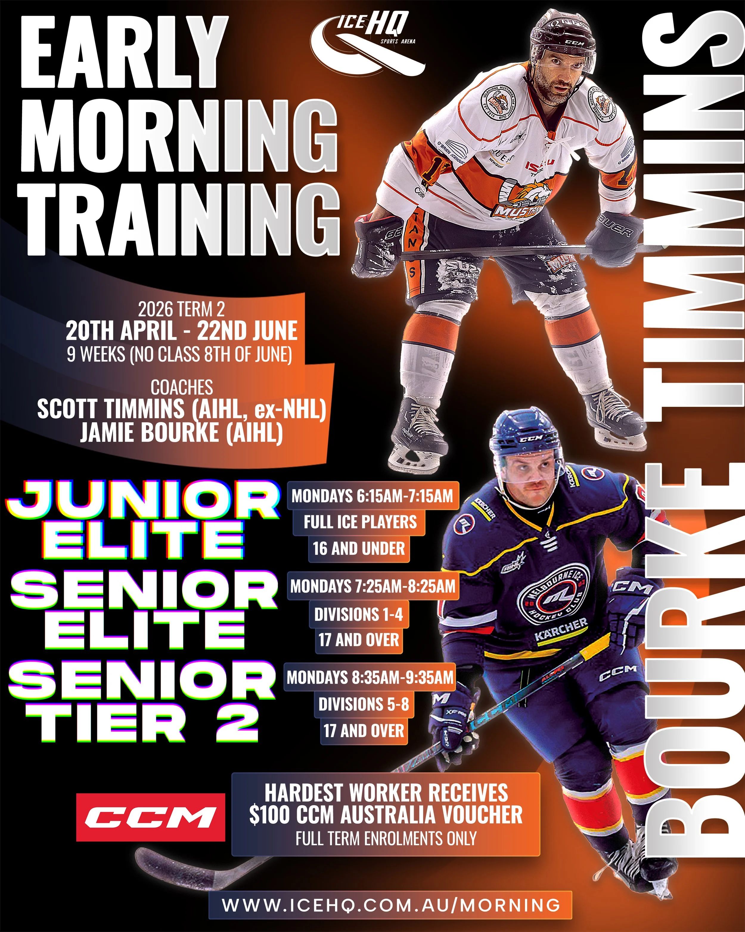 Skaters are grouped based on their level and ability which maximises ice time and allows coaches to give individual feedback to players in small groups. Suitable for Beginners and Division 9 & 10 players.