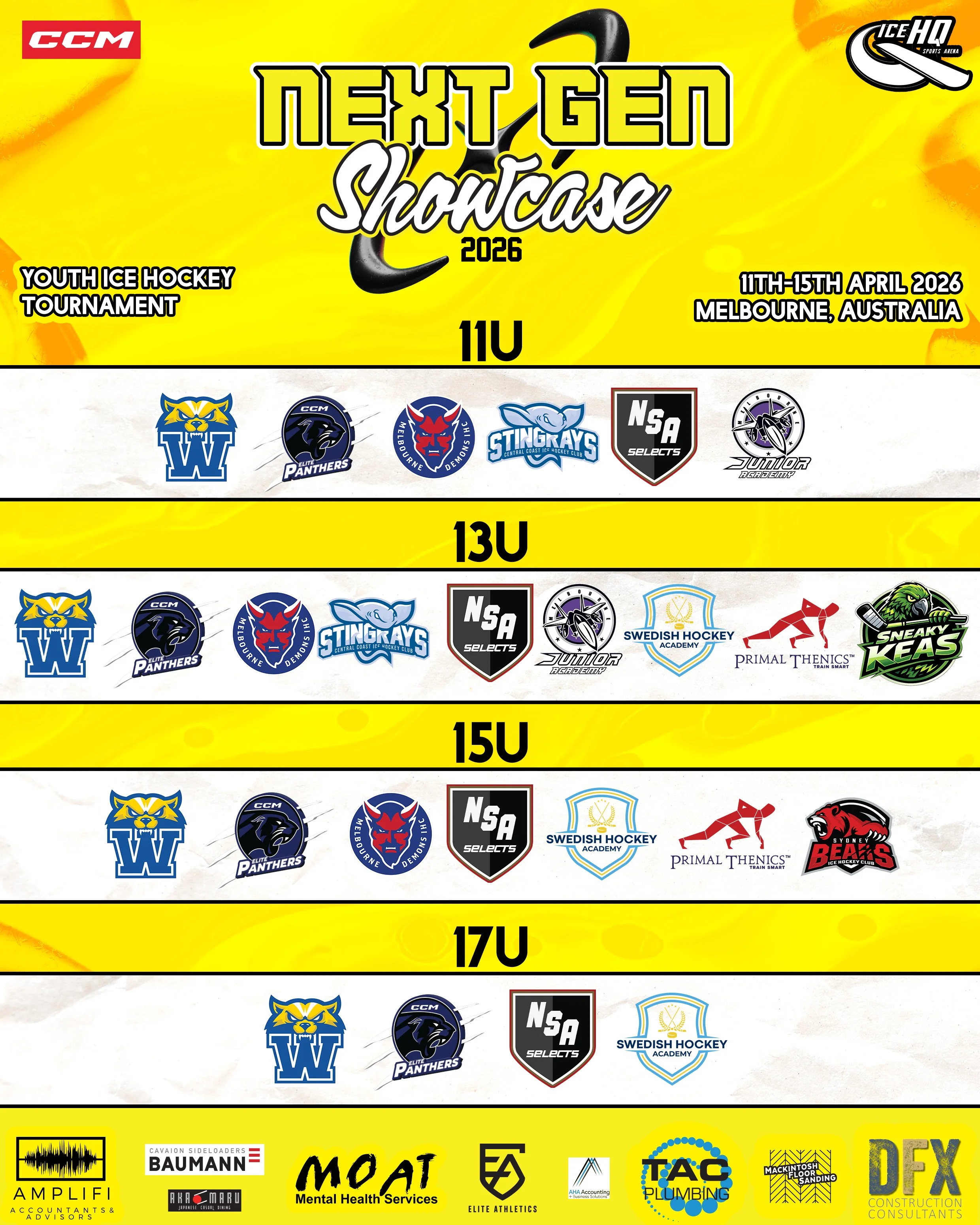 🏒 Next Gen Showcase, Australia’s newest and biggest youth hockey tournament, held at iceHQ in Melbourne! 🏒 Now with an added 17U division!