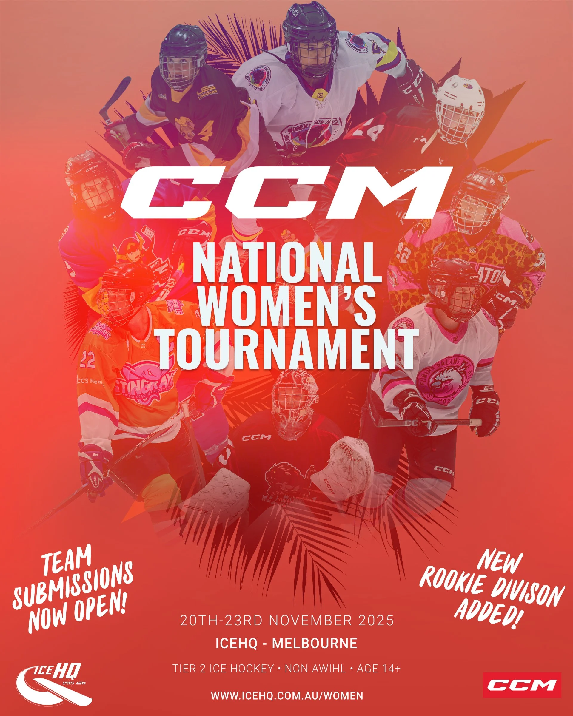 We are thrilled to announce that team submissions are now open for the highly anticipated fourth annual CCM National Women’s Tournament returning to iceHQ 20th-23rd November 2025!